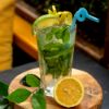 Cocktail Mojito Un cocktail rafraîchissant à base de rhum blanc, de menthe fraîche, de sirop de sucre, de jus de citron vert et d'eau pétillante, servi sur glace avec une garniture de feuilles de menthe et de quartiers de citron. |