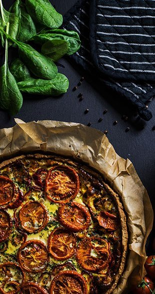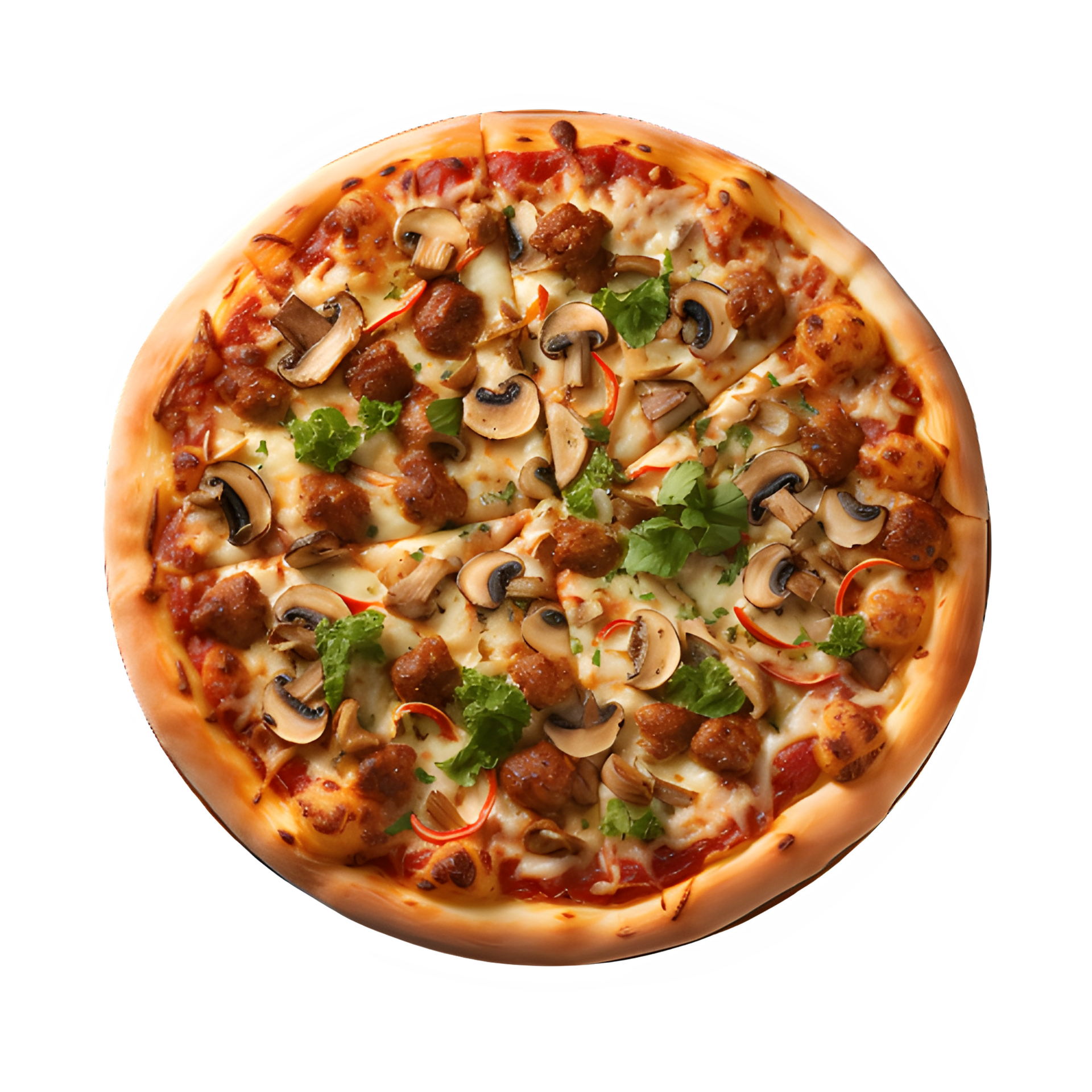 Pizza Primavera Une pizza végétarienne garnie de tomates fraîches, de poivrons, d'oignons, de champignons, d'olives et de mozzarella, le tout sur une sauce tomate légère. |