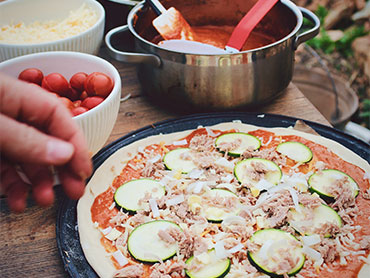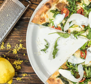 Pizza Margherita Une base de sauce tomate maison, mozzarella fraîche, basilic frais et une touche d'huile d'olive extra vierge. |