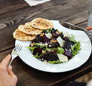 Salade César Grillée Laitue grillée, poulet mariné, croûtons, parmesan, vinaigrette César. |